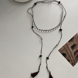 新中式国风项链女高级感小众设计感串珠叠戴流苏人造水晶长款项链
