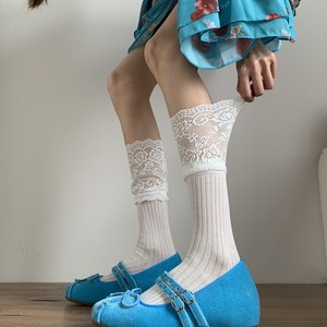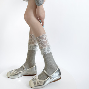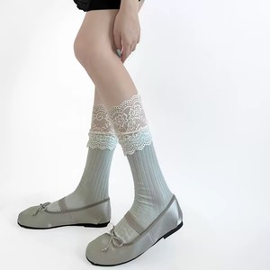 春夏款JK白色小腿袜女甜美lolita粉色堆堆袜蕾丝花边灰色中筒袜子