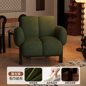 考拉单人沙发椅法式奶油风客厅阳台休闲椅复古懒人设计师沙发单椅