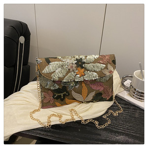 2025刺绣亮片夏季新款编织大容量洋气草编大容量链条腋下单肩包