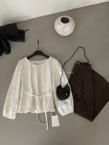 【MISS密思家】气质重工扭结麻花领净版木耳边小衫(配腰绳)W673