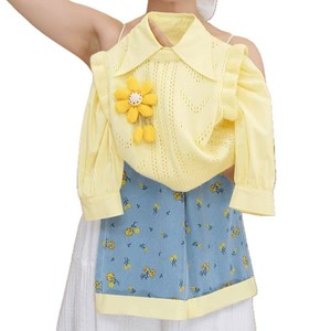 黄色马甲+黄色衬衫+碎花牛仔裤