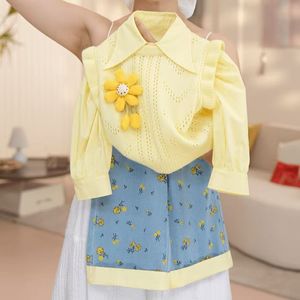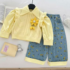 女童秋季套装2025新款洋气儿童秋装女孩时髦马甲衬衫牛仔裤三件套