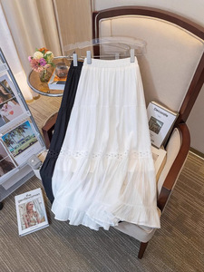 白色蕾丝半身裙女大码胖mm遮肚显瘦梨形身材中长款a字伞裙子高腰