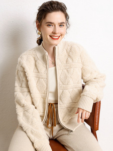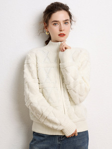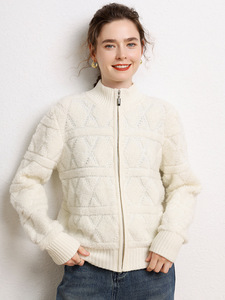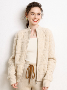 2025年秋冬新款山羊绒半高领针织开衫拉链纯色毛巾绣加厚上衣外套
