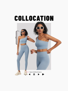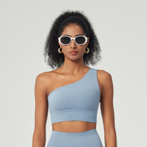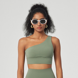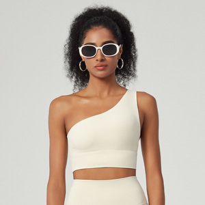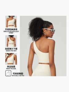 跨境斜肩运动内衣个性跑步健身舞蹈美背裸感抗菌瑜伽文胸防震内搭