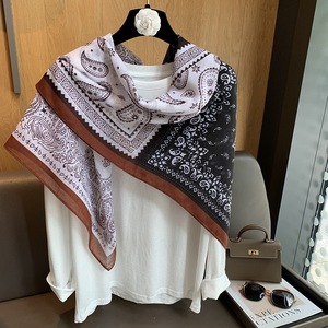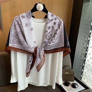 2025老钱风腰果花显白棕色大方巾丝巾领巾衬衫披肩发带系腰带围巾