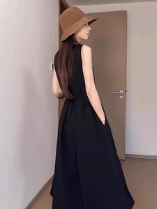 赫本风黑色无袖背心连衣裙子女夏季2025新款茶歇法式气质宽松长裙