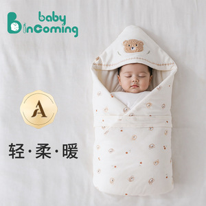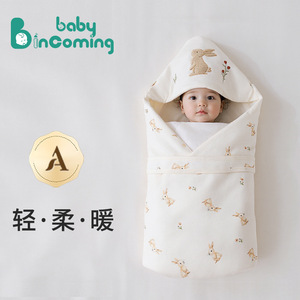 新生宝宝秋冬加厚卡通棉花抱被婴儿纯棉被子a类产房襁褓外出包被