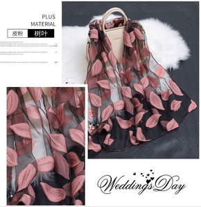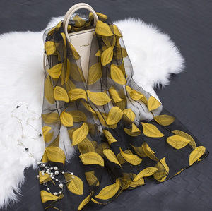 2025秋冬韩版欧根纱花朵剪花丝巾时尚百搭两用围巾长款披肩批发