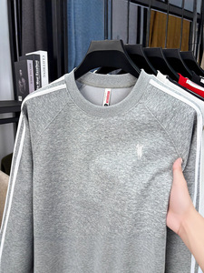 秋季新款圆领男生卫衣三条杠高级感刺绣青年吸汗运动男士t恤长袖