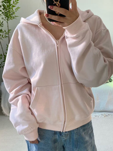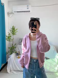 skims卡戴珊粉色休闲运动服外套时尚慵懒风拉链连帽薄绒外套卫衣