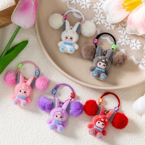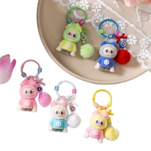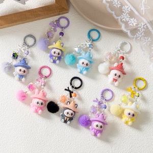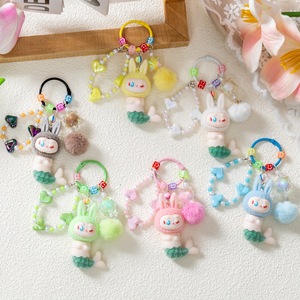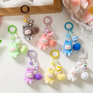 创意拉布布钥匙扣小萌粒植绒labubu包挂汽车钥匙扣装饰挂件手机链