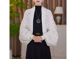 新款秋冬针织密织方格披肩保暖百搭时尚气质开衫洋气外搭镂空