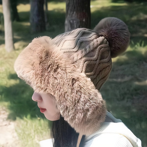 新款包头帽大头围帽子女冬季针织毛线帽加厚保暖护耳东北雷锋帽潮