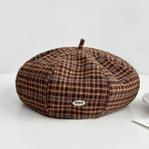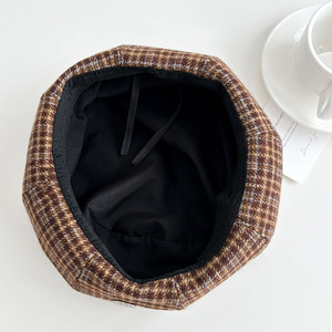 复古格纹贝雷帽子女秋冬季文艺英伦画家帽大头围显脸小百搭南瓜帽