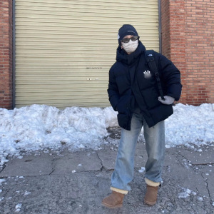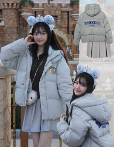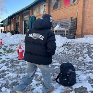 MLB&NY韩版立领绣标羽绒服男女冬季情侣保暖面包服白鸭绒简约外套