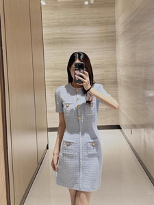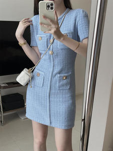 SP2025秋季新款南油高级感雾霾蓝小香风气质针织连衣裙短裙