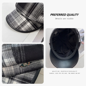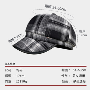 小香风格纹鸭舌八角帽女秋冬季百搭显脸小画家帽防晒报童帽
