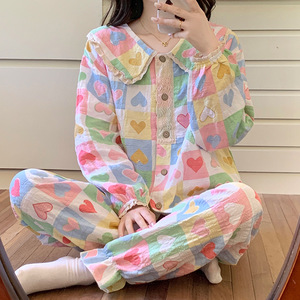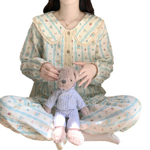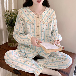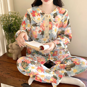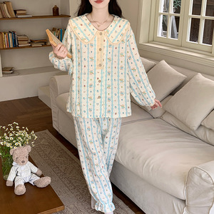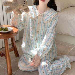 云朵棉睡衣女2025新款春秋季甜美娃娃领长袖长裤公主风家居服套装