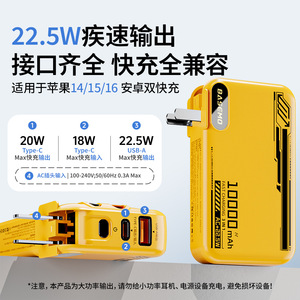 倍魔3C认证一万毫安三合一充电宝自带线墙插快充移动电源可上飞机
