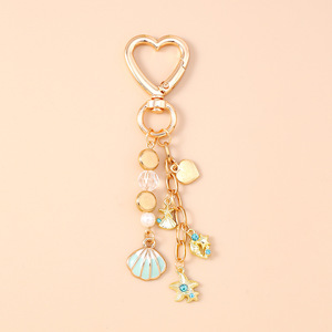 欧美时尚流行滴油贝壳海星钥匙扣时尚水钻太阳爱心钥匙圈包包挂件