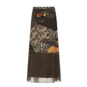 诺维奇欧美跨境复古古着感植物花卉印花撞色小众设计辣妹半身裙批