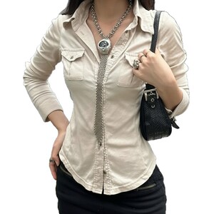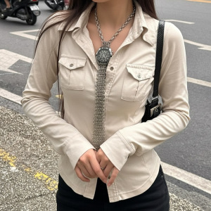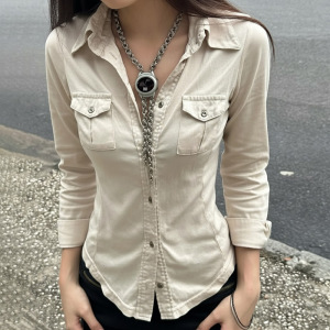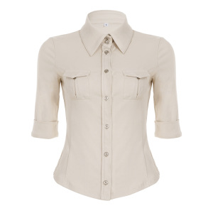 工业废土风单排扣衬衫女美式复古收腰显瘦百搭新款双口袋中袖上衣