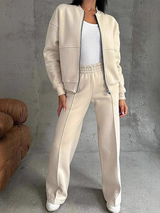 2025跨境独立站欧美外贸新款秋冬休闲拉链夹克外套阔腿裤两件套女