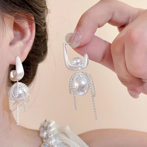 925银针法式珍珠耳环轻奢高级感小众耳钉精致一款多戴流苏耳饰女