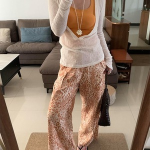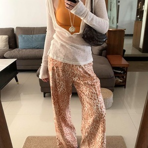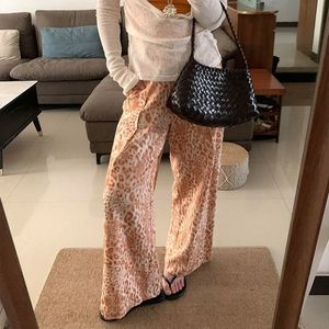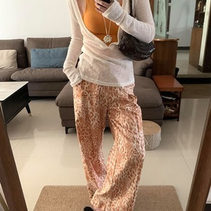 美式大码设计感定染豹纹印花休闲裤子女辣妹宽松bf慵懒风拖地长裤
