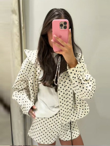 欧美跨境外贸2025春秋新款立领波点短款抽绳外套短裤套装