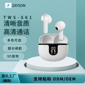 工厂源头TWS私模S61蓝牙5.3耳机通话降噪高清数显无线运动耳机跨