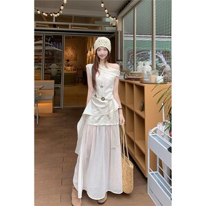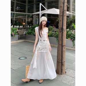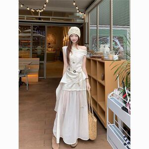 一套优质版(白色上衣+腰带+白色网纱半身裙)