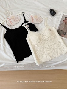 早秋蕾丝美背固定杯内衣夏季薄款带胸垫一体式防走光无痕吊带背心