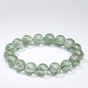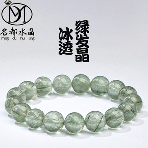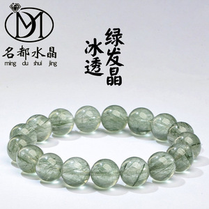 名品都水晶 天然冰透绿发晶手链圆珠 绿发晶手串绿色猫眼绿发批发