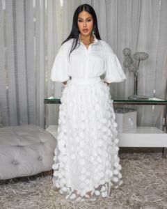 欧美女装 跨境外贸新款 大小圆圈立体绣花网纱通勤优雅衬衣裙套装