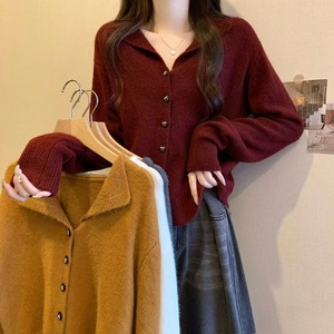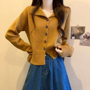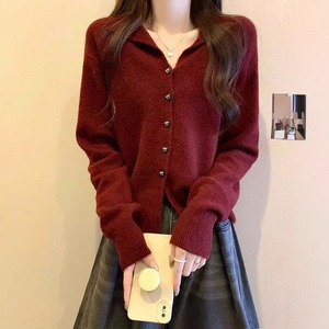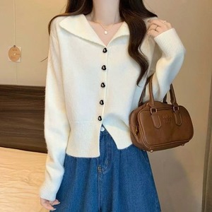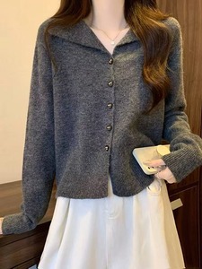 韩系短款设计感针织开衫2025气质穿搭翻领显瘦慵懒风毛衣外套女