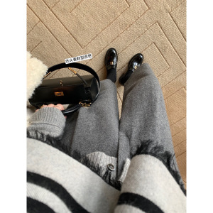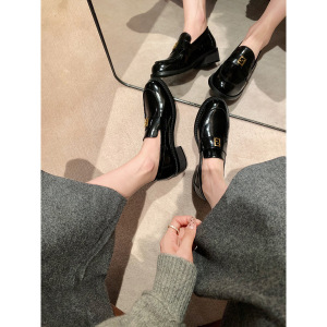 高级感牛皮版~葡萄妈同款金色方扣英伦风圆头粗跟乐福鞋女小皮鞋
