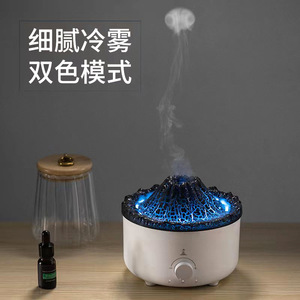 跨境熔岩火山喷雾加湿器家用大容量带遥控仿真水母烟圈火焰香薰机