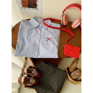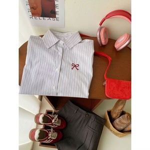 韩系小个子蝴蝶结刺绣长袖衬衫女春秋内搭外穿叠穿洋气衬衣上衣潮