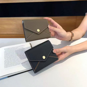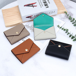 头层牛皮短款撞色小钱包2025新款时尚拼接折叠零钱包证件卡片收纳