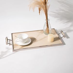 轻奢极简长方形金属提手托盘样板间售楼处酒店编织皮革收纳盘饰品