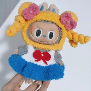 Labubu一代三代公仔衣服17cm心动马卡龙搪胶脸拉布布娃衣换装着替