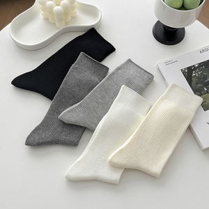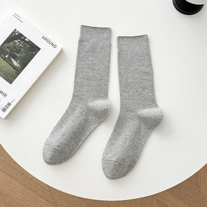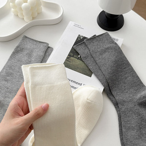 日系袜子女纯色百搭中筒袜批发双针松口芭蕾风堆堆袜女士月子袜棉