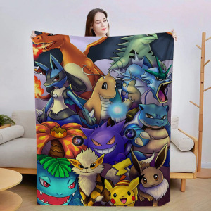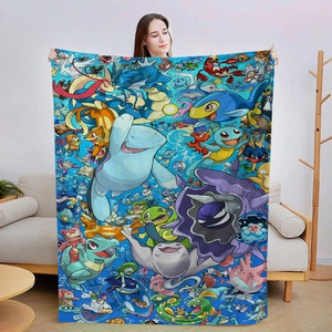 新款跨境法兰绒卡通宝可梦毛毯 办公室午睡毯 法兰绒毯 沙发盖毯