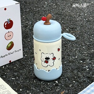 蓝苹果保温口袋杯【300ML】-幸运小狗+硅胶杯垫