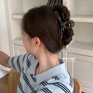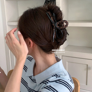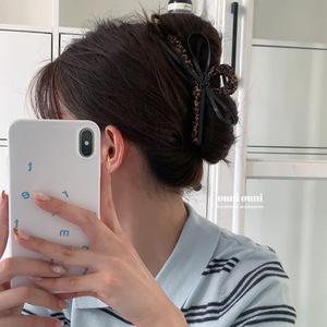 早秋美拉德豹纹蝴蝶结头发抓夹鲨鱼夹大号发抓盘发夹子后脑勺发饰