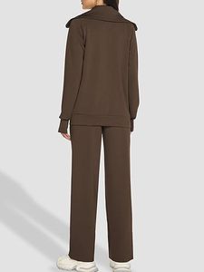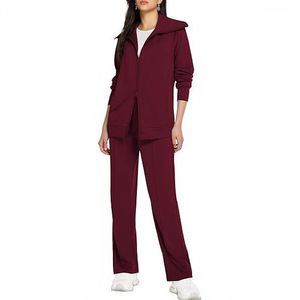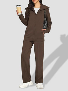 新款跨境休闲套装女式运动服时尚拉链款外贸纯色长袖长裤两件套