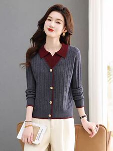 毛衣女针织衫假两件上衣时尚洋气打底毛衫妈妈内搭秋冬